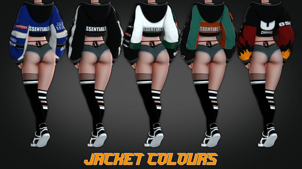 ⤷ Clothing: Top, Shorts, Jacket, Jacket Vest, Socks, Shoes, Bra, Panties