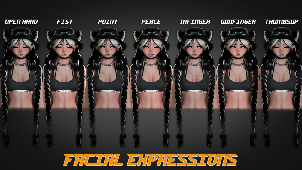 ⤷ Accessories: Bucket Hat, Choker, Glasses, Gloves, Goggles, Kneepad, Lollipop, Headphones, Phone
