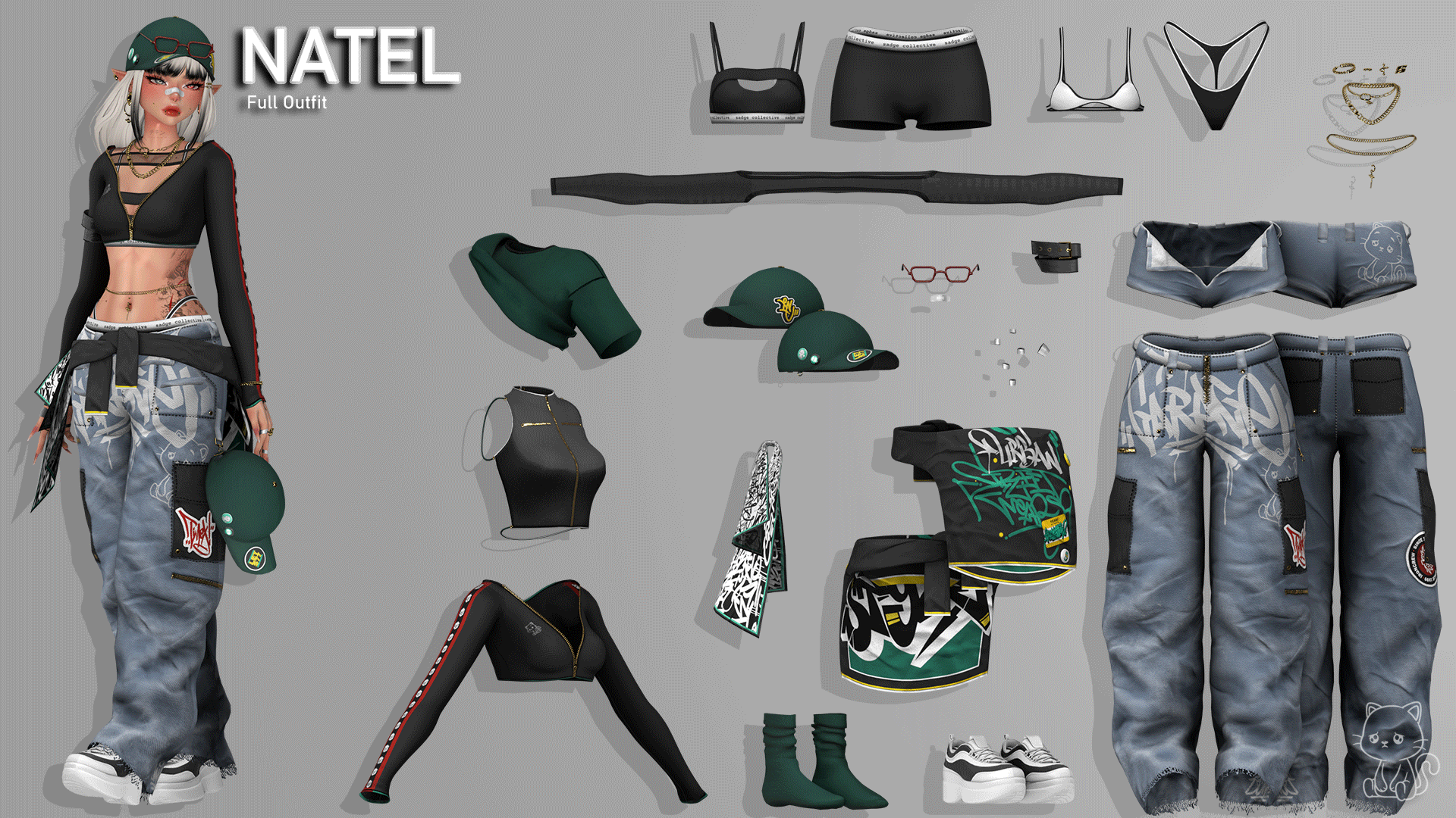 "sadgecc": All Tops, Trousers, Shorts, All Accessories, Tattoos (Clothing will be available for purchase shortly after release)